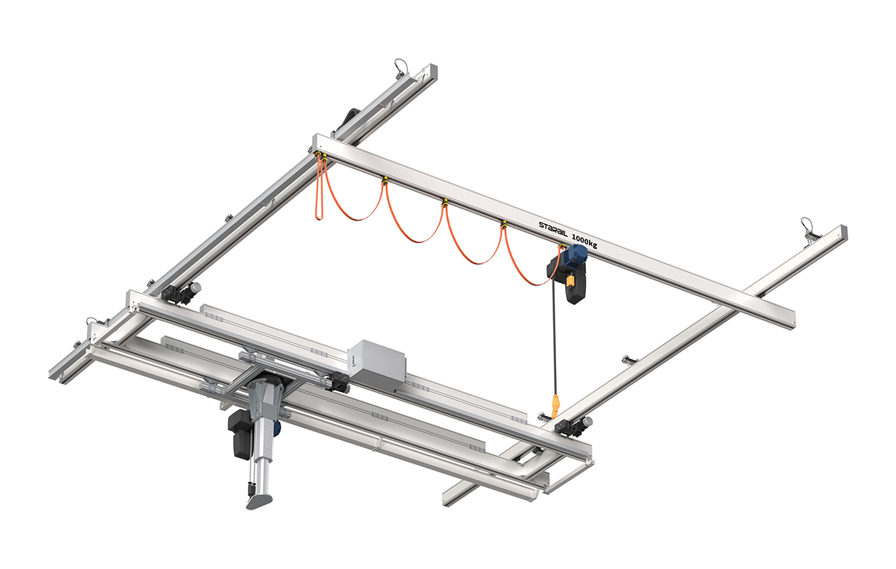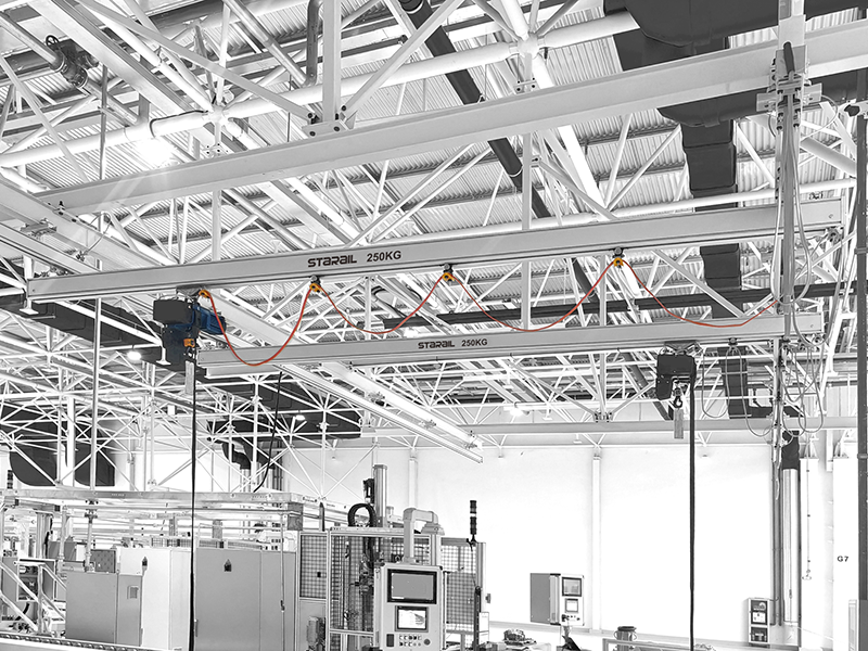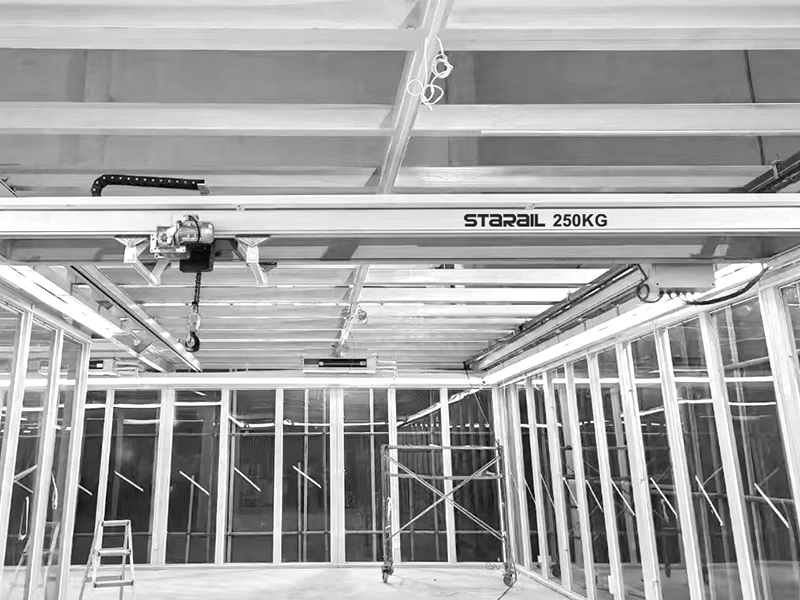 Aluminum alloy rails are anodized for corrosion resistance, offering excellent wear resistance, high bending strength, light weight, and low friction (50% lighter than traditional KBK rails). The modular design makes installation easy. Five models are available: monorail, single-beam, double-beam, telescopic beam, and combined self-supporting. Flexible and rigid mounting options are available, with seamless rail joints. Manual or electric operation offers low noise levels. Nylon wheels minimize rail wear, resulting in quiet and smooth operation suitable for larger spans.